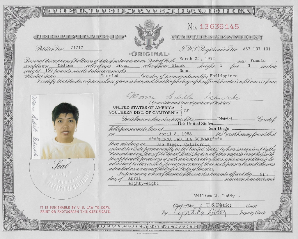I am the daughter of an immigrant. My mother came to the United States of America in 1980 from the Philippines and became a US citizen in 1988. She raised me to be a patriot and love my country.