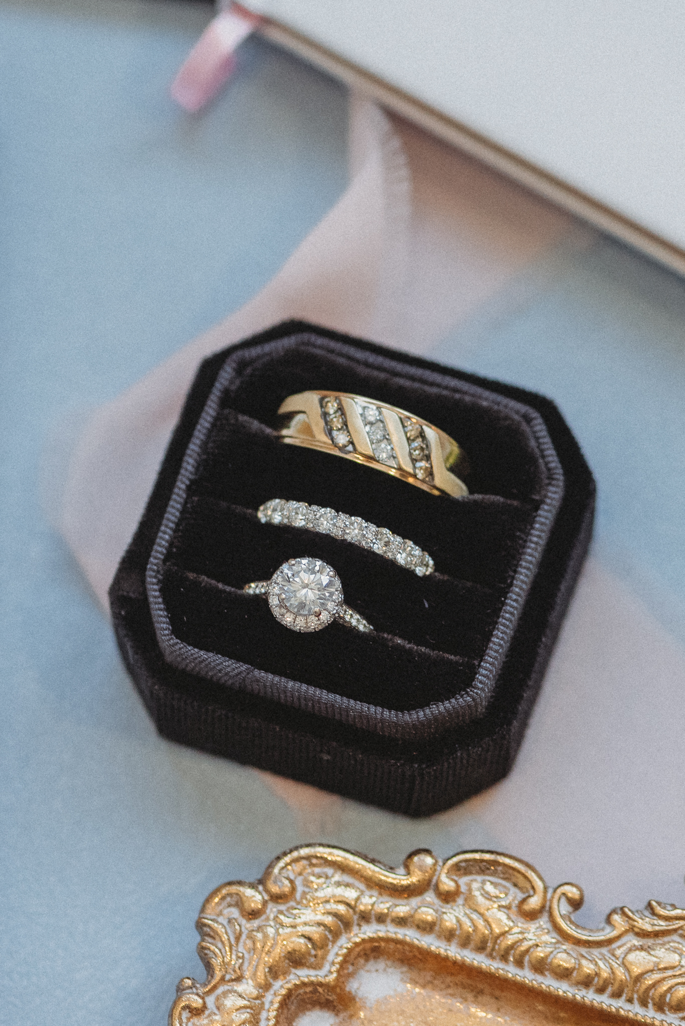 I always begin wedding days by photographing details while the bride is finishing hair and makeup. About a month prior, I send each couple a detailed questionnaire that helps me understand what matters most to them. I also suggest they gather their invitation suite, rings, florals, shoes, heirlooms — anything meaningful — in one place so I can begin documenting immediately upon arrival.